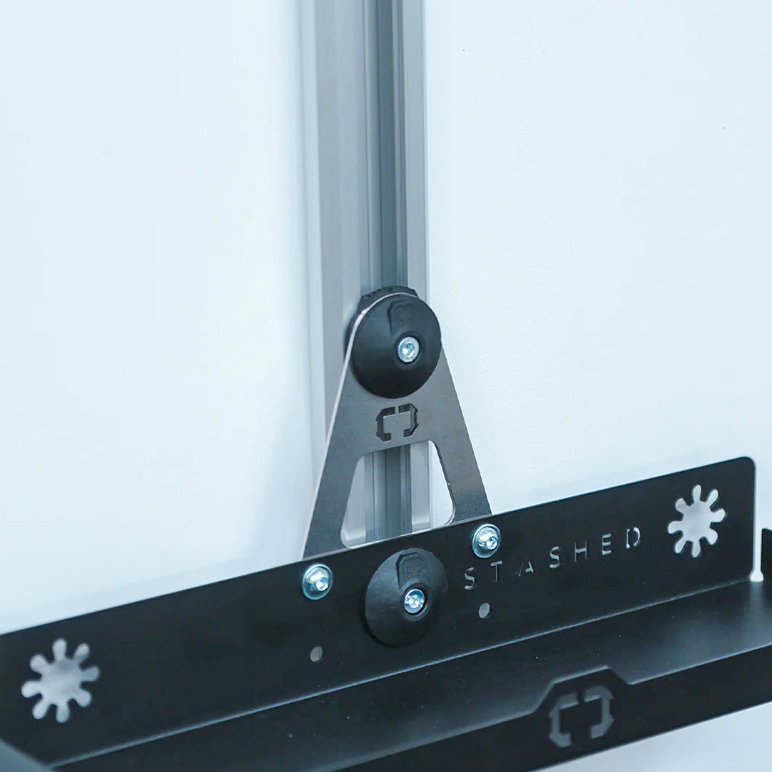 und ermöglicht es, LodeStar-Zubehör einfach einzuklicken und reibungslos entlang der Schiene zu verschieben. So lässt sich der Aufbewahrungsbereich individuell gestalten.