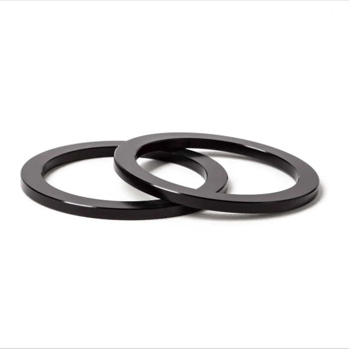 Black, anodized 6061 Aluminum spacers for adjusting BSA bottom bracket or crank/chainring position.